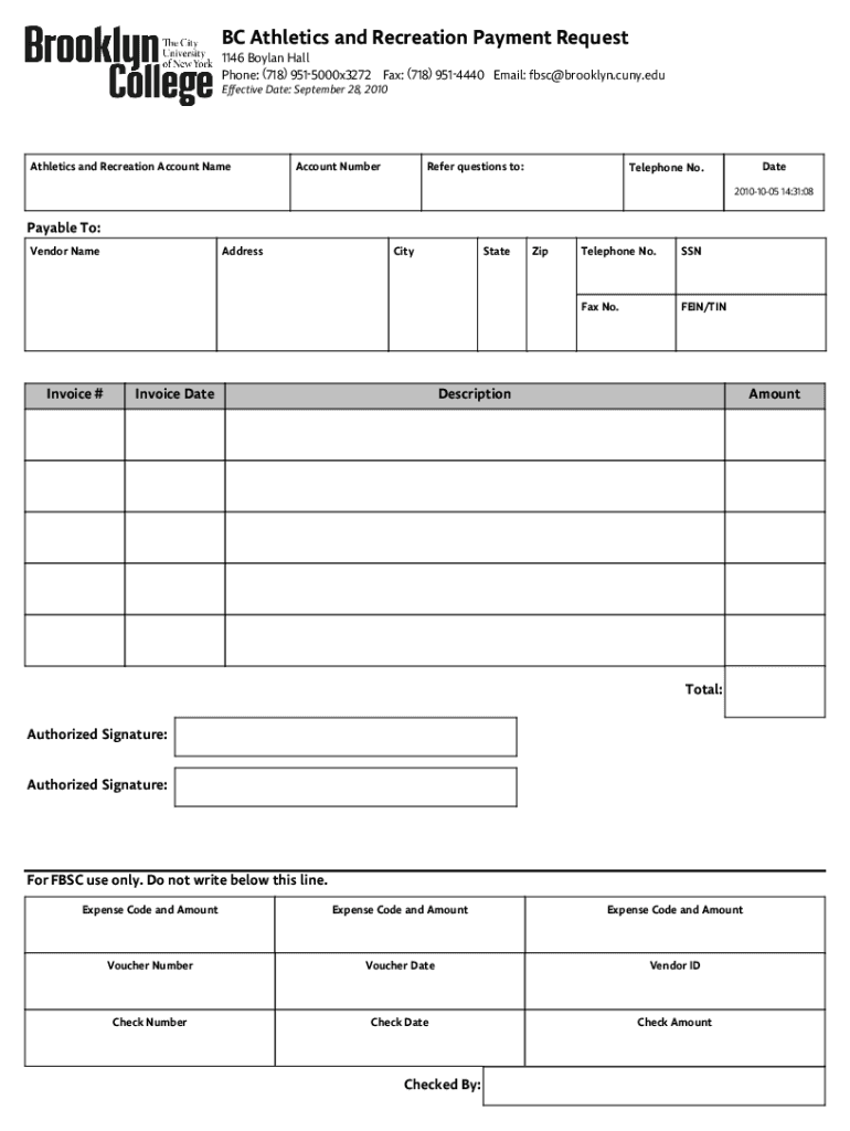 Get the free Brooklyn College Association Inc. Payment Request Form