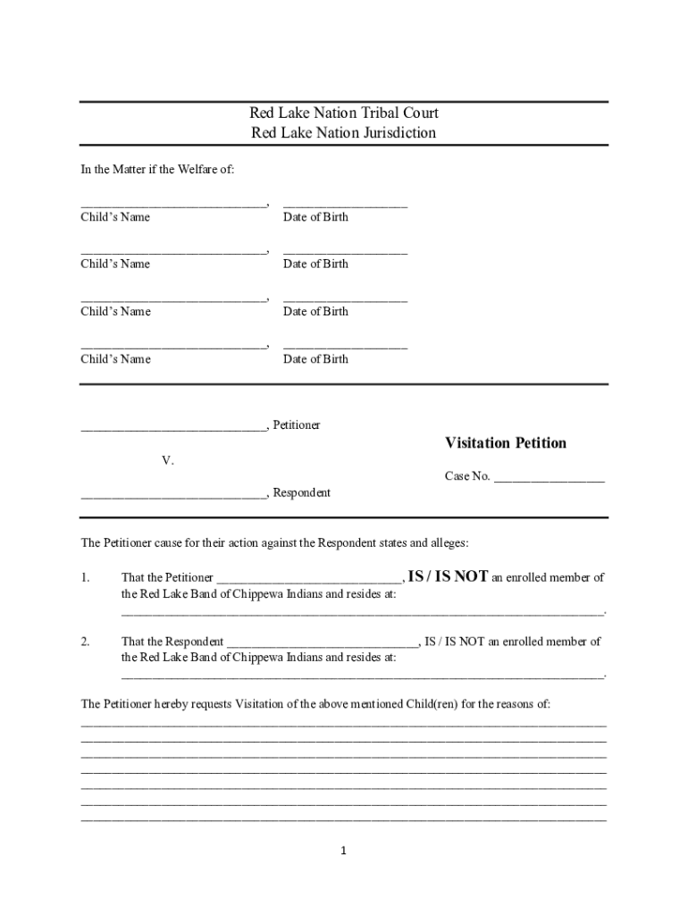 Red Lake Nation Tribal Court Red Lake Nation Jurisdiction In the Matter if the Welfare of: ___, Child's Name___ Date of Birth___, Child's Name___ Date of Birth___, Child's Name___ Date of Birth___,