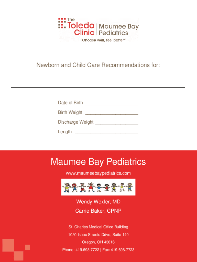Newborn and Child Care Recommendations for:Date of Birth ___ Birth Weight ___ Discharge Weight ___ Length ___Maumee Bay Pediatrics www.maumeebaypediatrics.comWendy Wexler, MD Carrie Baker, PNP St.