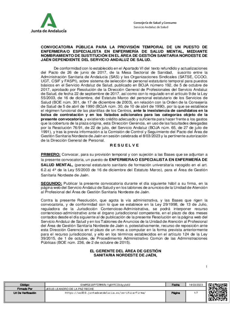 Service Analog de SaludCONVOCATORIA PBL ICA PARA LA PROVISION TEMPORAL DE UN PUERTO DE