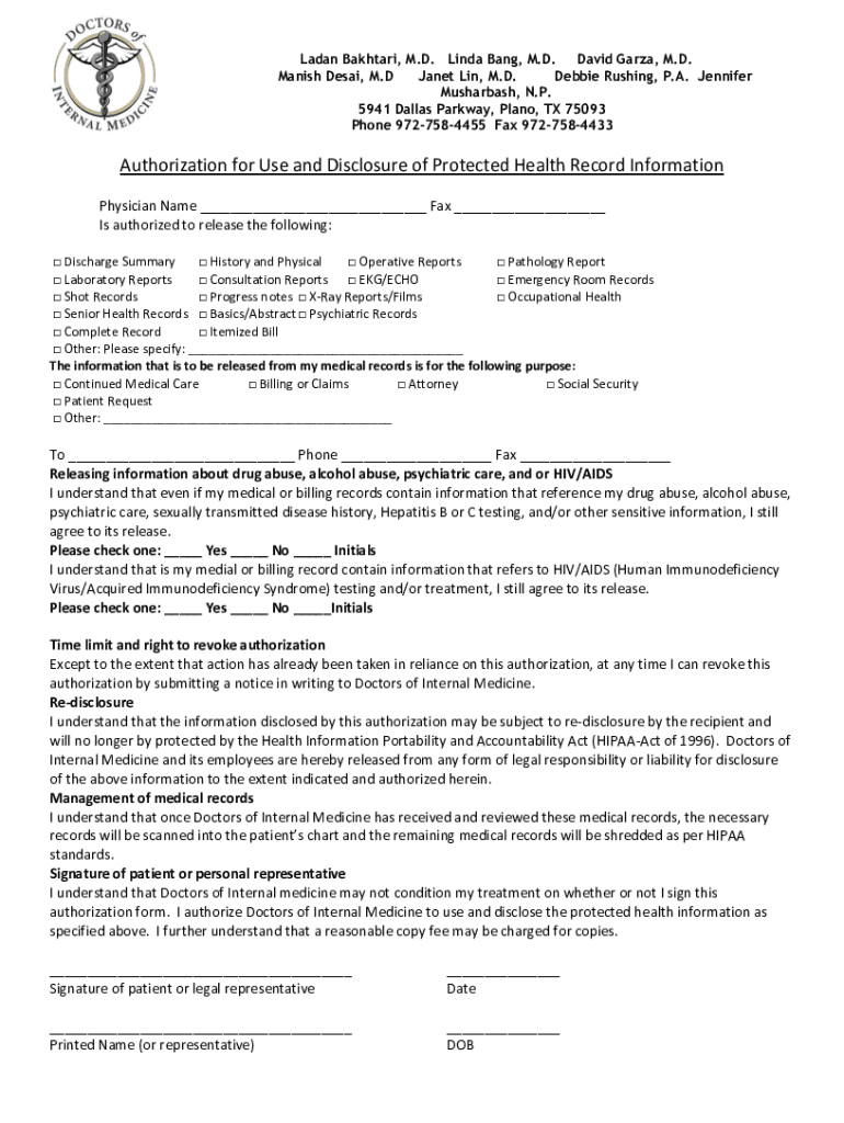 Laden Akhtar, M.D. Linda Bang, M.D. David Garza, M.D. Danish Desi, M. D Janet Lin, M.D. Debbie Rushing, P.A. Jennifer Musharraf, N.P. 5941 Dallas Parkway, Plano, TX 75093 Phone 9727584455 Fax 9727584433Authorization