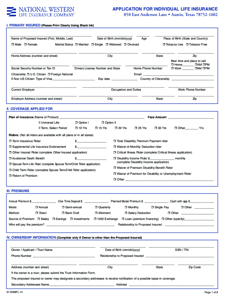 Application For Individual life Insurance 850 East Anderson Lane Austin, Texas 787521602 I. primary Insured (please print clearly using Black Ink) ___ Name of Proposed Insured (First, Middle, Last)