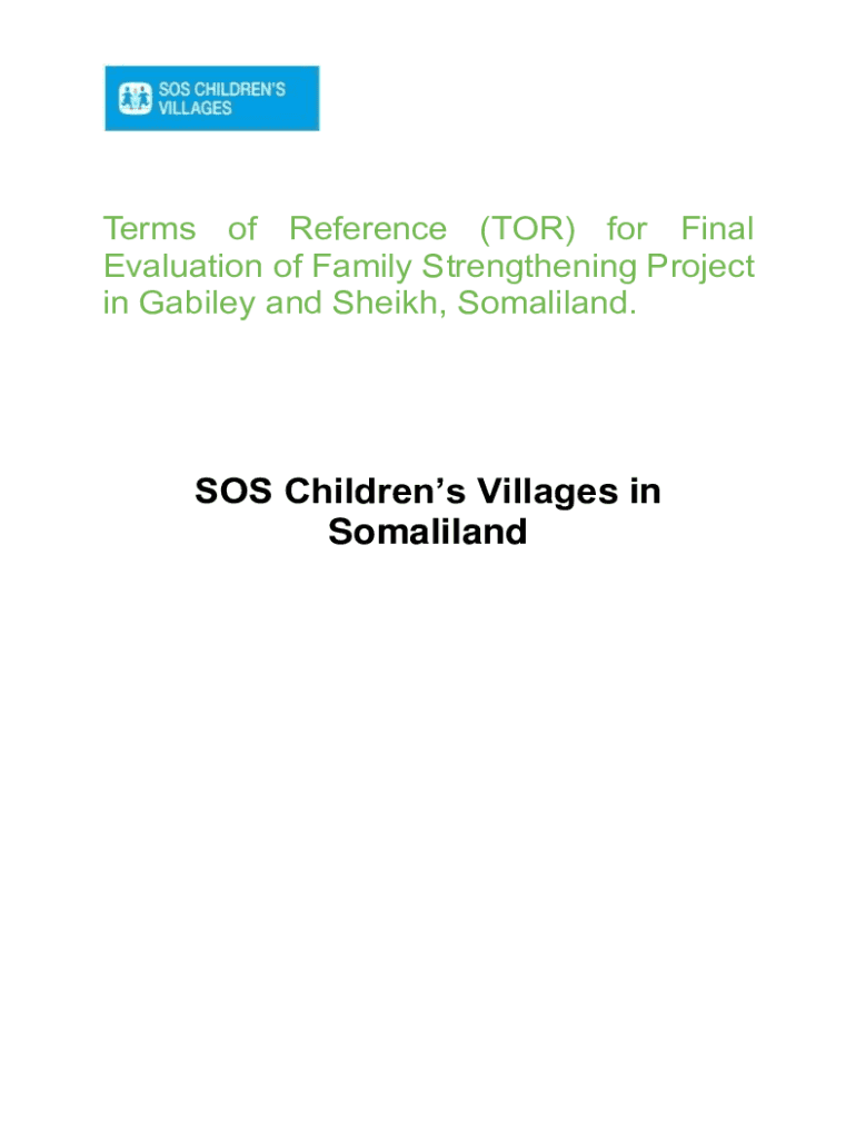 Terms of Reference (TOR) for Final Evaluation of Family Strengthening Project in Bailey and Sheikh, Somaliland. SOS Children's Villages in Somaliland for Final Evaluation of FS Project Bailey and