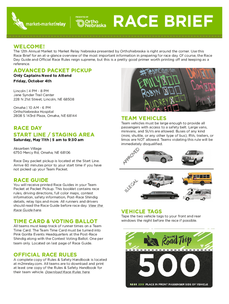 WELCOME! The 12th Annual Market to Market Relay Nebraska presented by OrthoNebraska is right around the corner. Use this