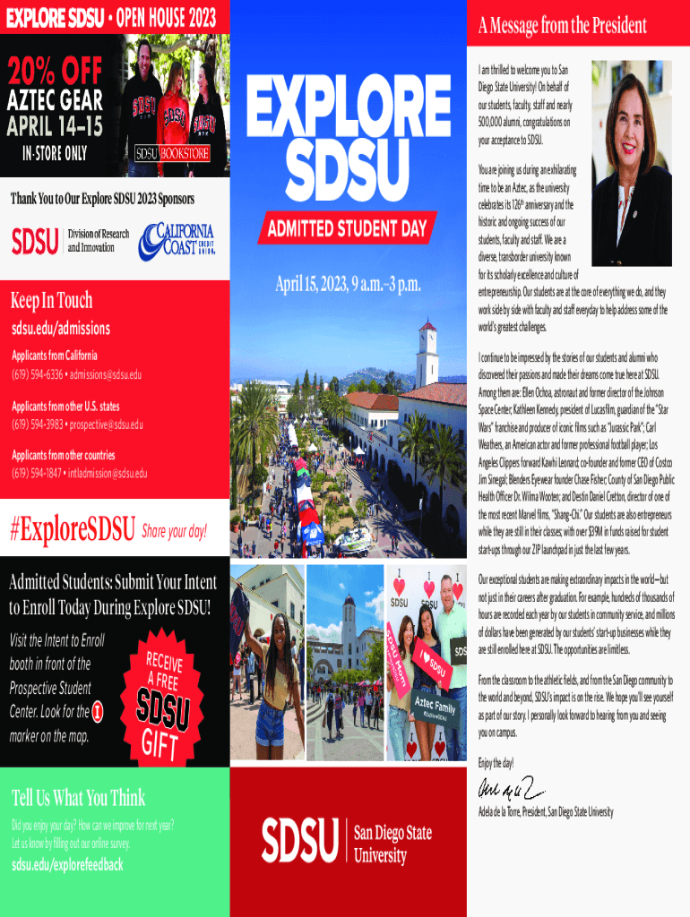 Get the free Explore SDSU Admitted Student Day Program