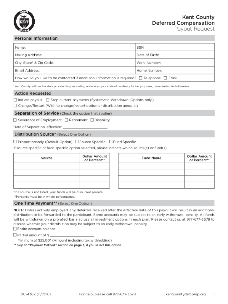 Submit the form to the Kent County Deferred Compensation office for processing.