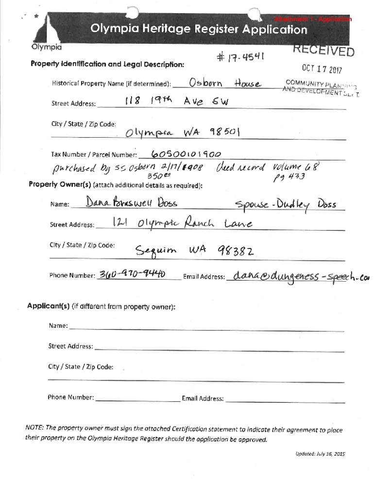 Attachment 1 ApplicationOlympiq Heritage Register Application