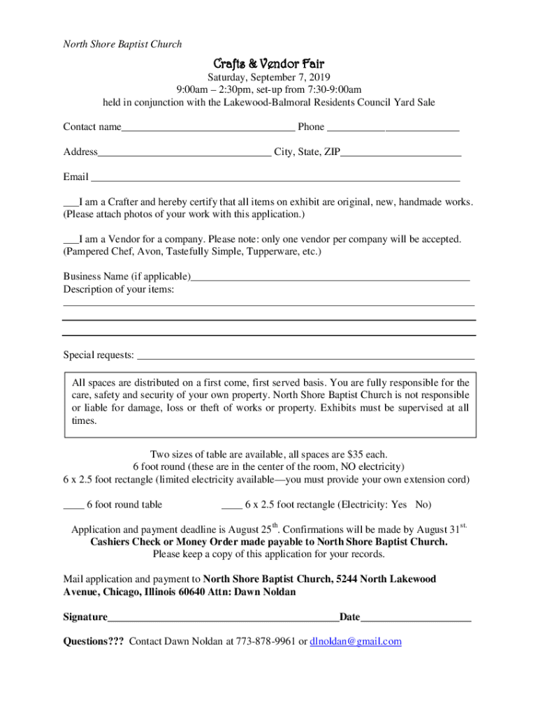North Shore Baptist ChurchCrafts & Vendor Fair