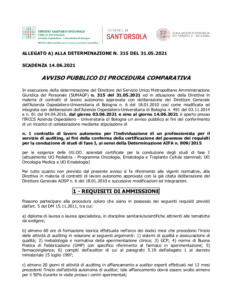 ALLEGATION A) ALL DETERMINATION N. 315 DEL 31.05.2021