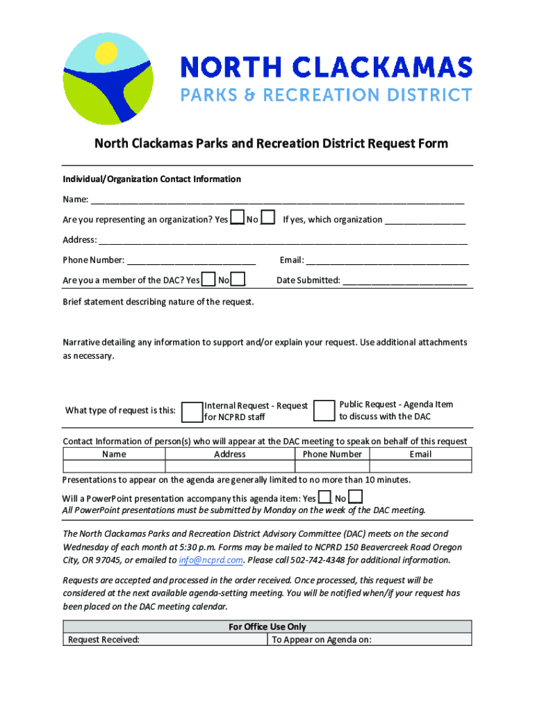 North Clackamas Parks And is not the form you're looking for?Search for another form here.