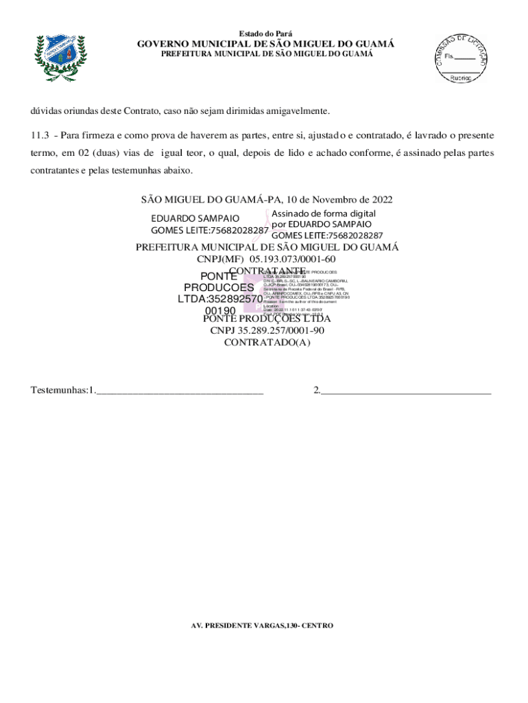 PREFECTURE MUNICIPAL DE SO MIGUEL DO GUAMCONTRATO N 20222982Pelo present instrument ode Contralto, DE um Lady o Municipal DE SO MIGUEL DO GUAM,