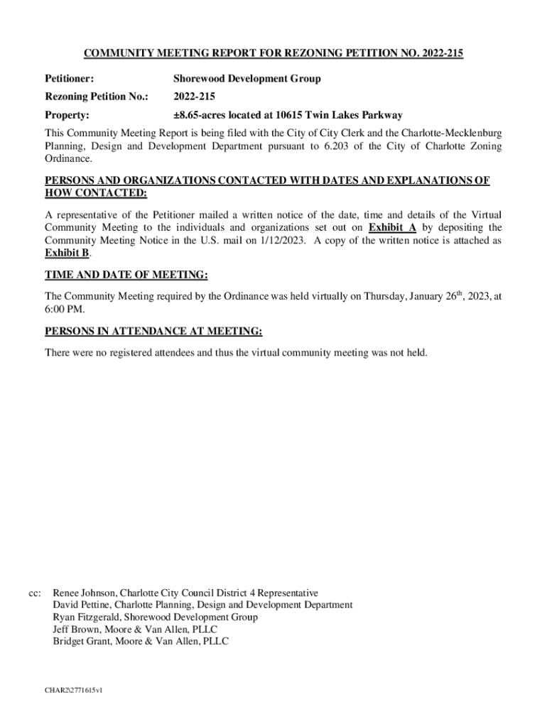 COMMUNITY MEETING REPORT FOR REZONING PETITION NO. 2022215