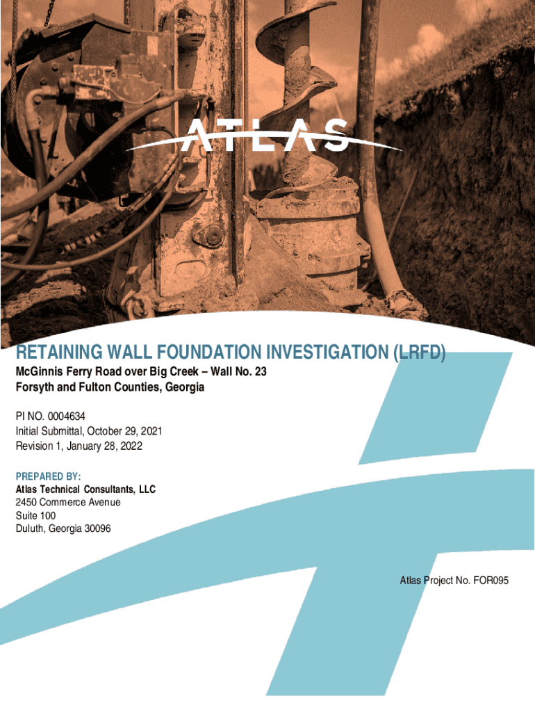 RETAINING WALL FOUNDATION INVESTIGATION (RFD) McGinnis Ferry Road over Big Creek Wall No. 23 Forsyth and Fulton Counties, Georgia Pies NO. 0004634 Initial Submittal, October 29, 2021, Revision 1,