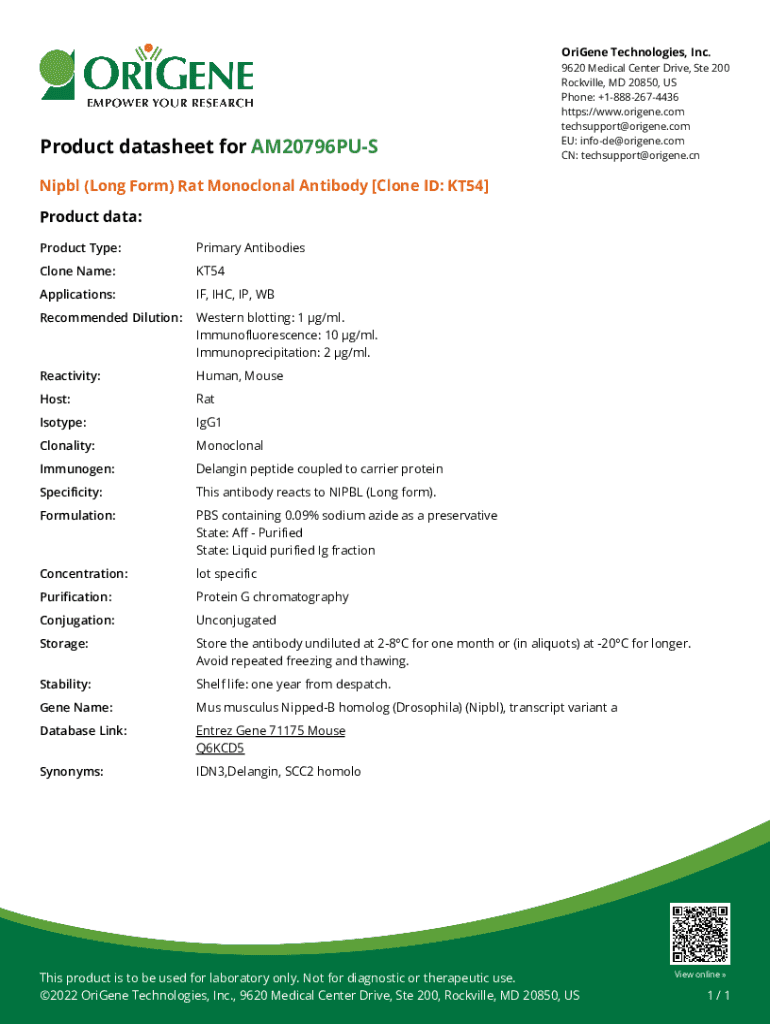 Get the free Nipbl (Long Form) Rat Monoclonal Antibody Clone ID: KT54