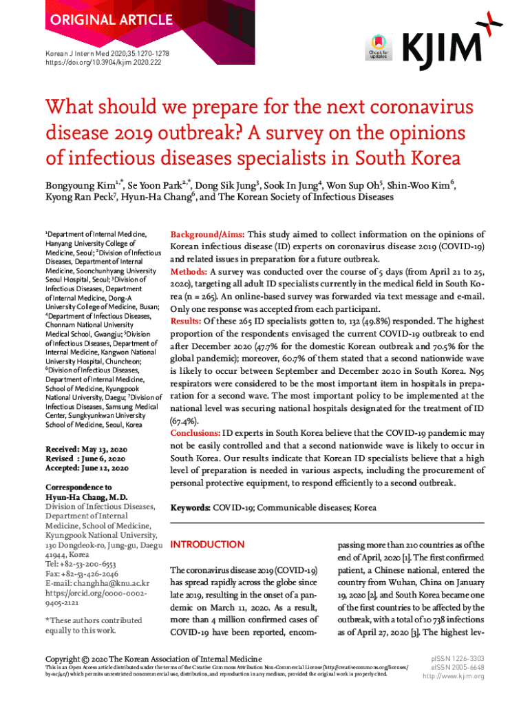 ORIGINAL ARTICLE Korean J Intern Med 2020;35:12701278 https://doi.org/10.3904/kjim.2020.222What should we prepare for the next coronavirus disease 2019 outbreak? A survey on the opinions of infectious