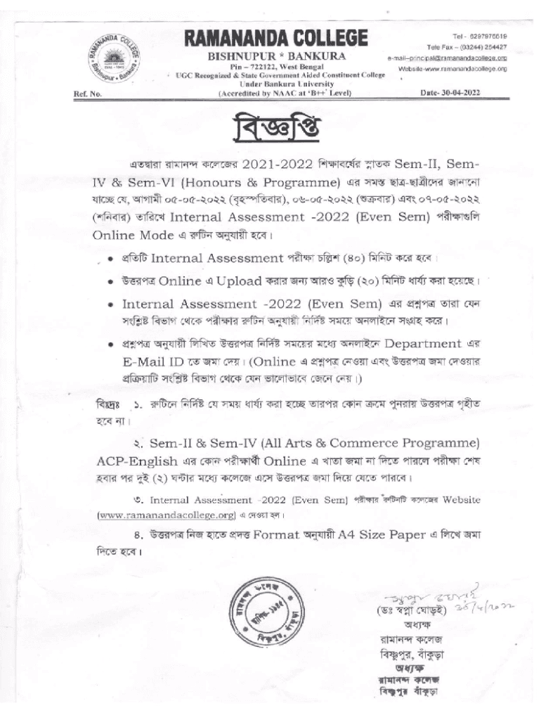 Notice for internal assessment can be filled out by providing relevant details about the assessment process and submitting it to the designated authority.