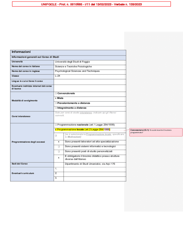 UNICYCLE Plot. n. 0010685 I/11 Del 13/02/2023 Verbal n. 133/2023Informazioni