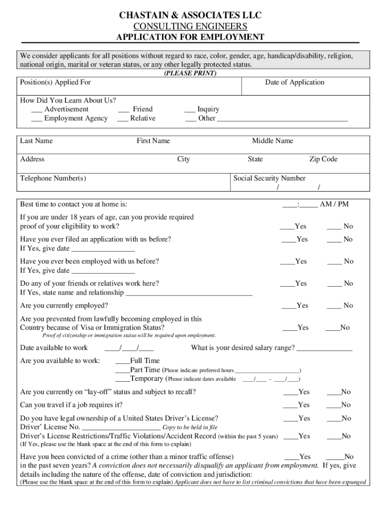 APPLICATION FOR EMPLOYMENT