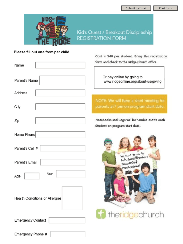 Submit by Emailing Formulas fill out one form per child Name Or pay online by going to www.ridgeonline.org/aboutus/givingParent\'s Name Address City Zip Home Phone Parent\'s Cell # Parent\'s Email