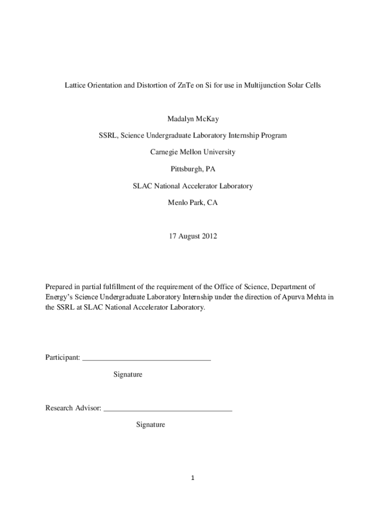 Lattice Orientation and Distortion of Ante on Si for use in Multifunction Solar CellsMadalyn McKay SSR, Science Undergraduate Laboratory Internship Program Carnegie Mellon University Pittsburgh, PAS