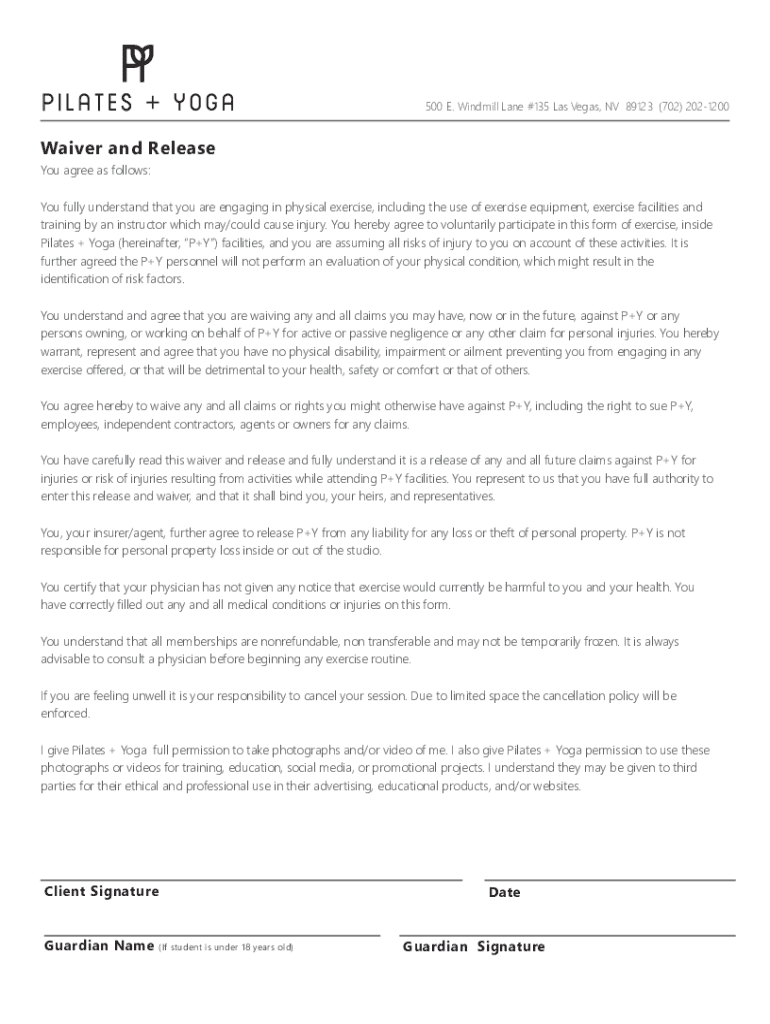 Get the free P+Y-Form-Waiver-PRINT-Rev-120232022