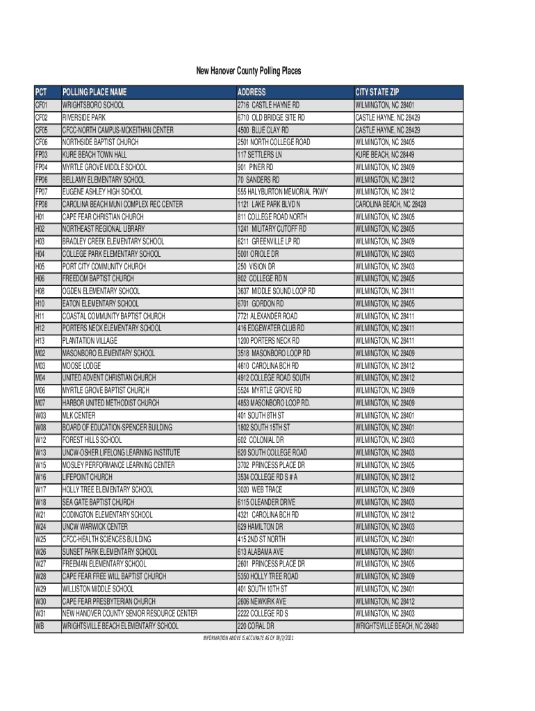 Get the free New Hanover County Precincts and Polling Places