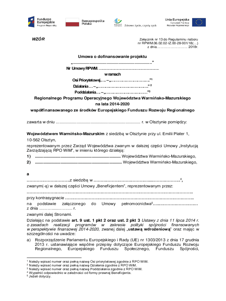 WZRZacznik NR 13 do Regulate labor NR RPM.06.02.02IZ.0028001/18() z Dina 2018r. Iowa o dofinansowanie project .................................................................... NR Snowy RPM. .............................................................................