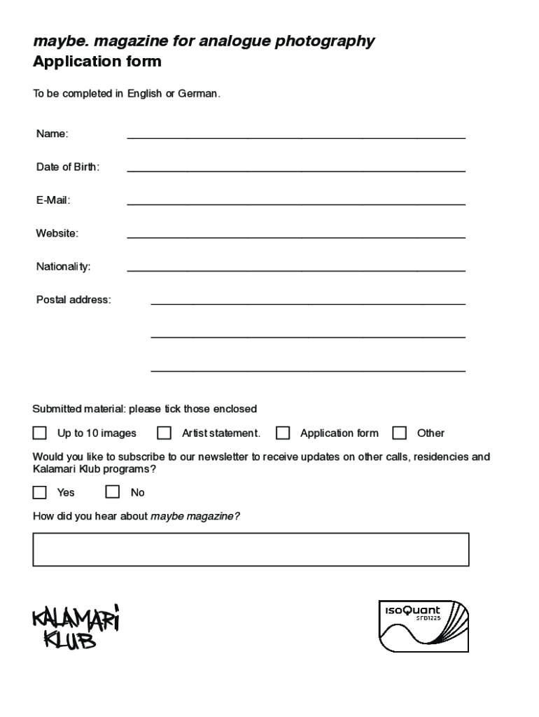 Maybe. Magazine for analogue photography Call for submissionsPublication: Summer 2022Deadline: Sunday, February 20, 2022. GuidelinesRegulationSubmitted works must feature an artistic take on science