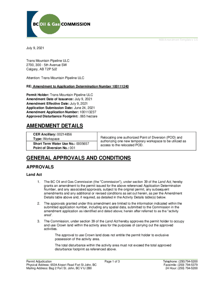 NEB Amendment Template v 1.6July 9, 2021Trans Mountain Pipeline ULC