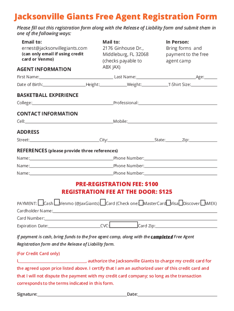 Get the free We Are Giants All Positions Are Open Tryout Information