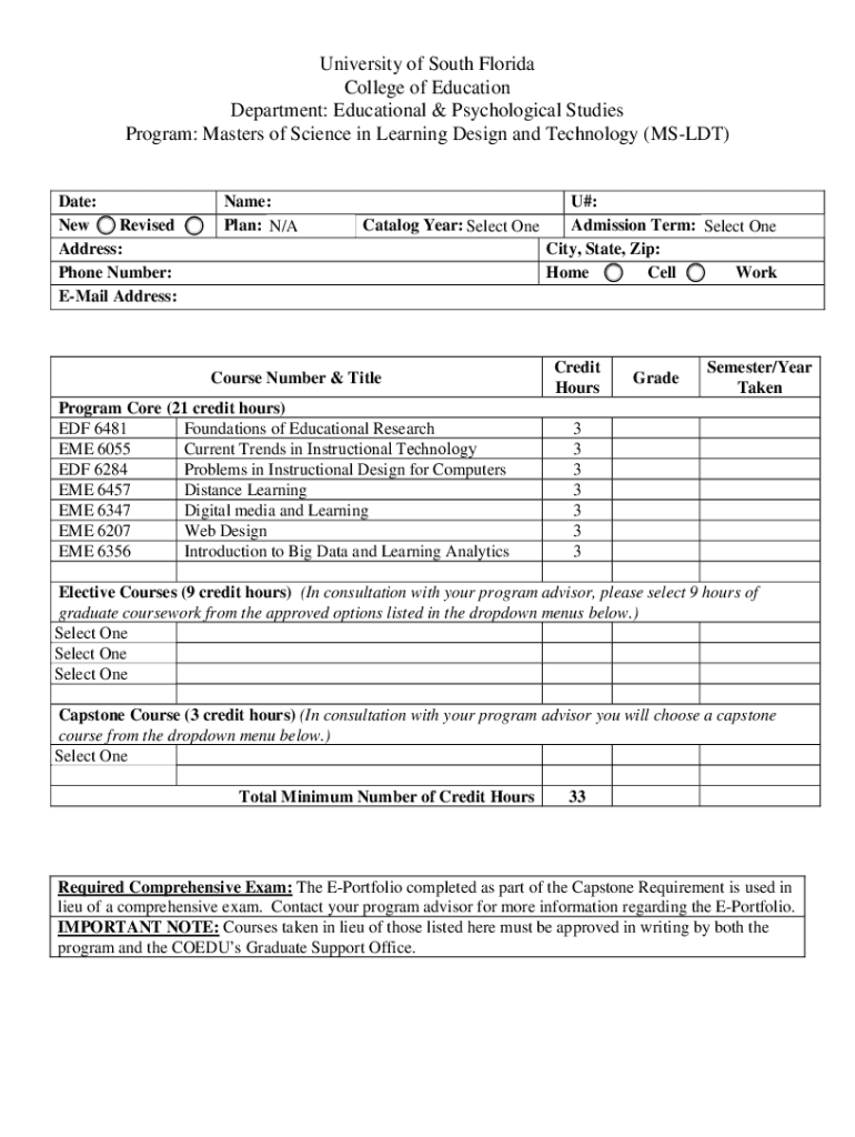 Master’s Degree Planned Program of Study STUDENT: PLEASE RETAIN THIS FORM FOR YOUR REFERENCE The Planned Program of Study form is a document listing all the courses students must take to complete