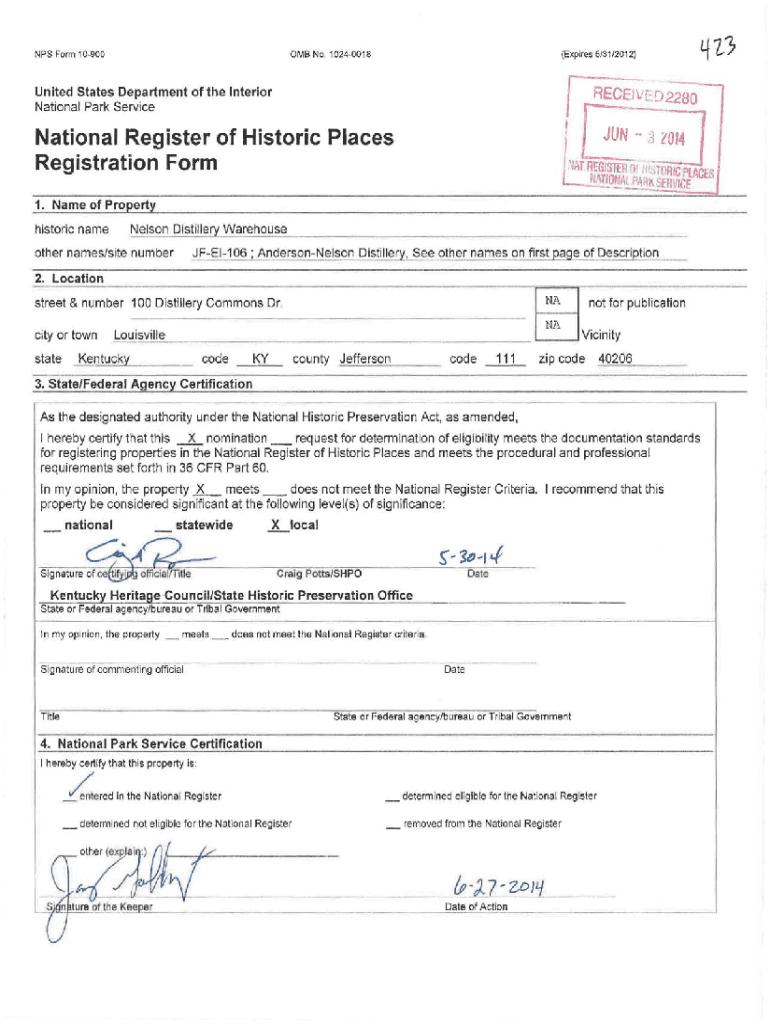0 MB No. 10240018NPS Form 10900(Expires 5/31/2012)United States Department of the Interior National Park ServiceNational Register of Historic Places Registration Form 1. Name of Pro prehistoric name