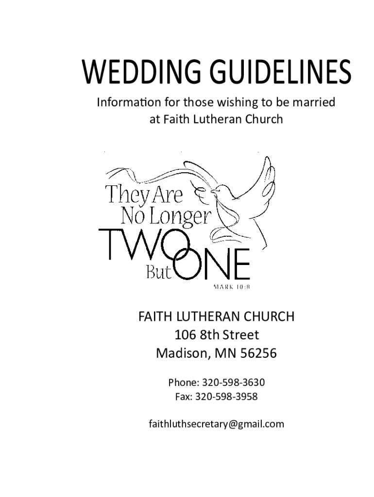Information for those wishing to be married at Faith Lutheran Churchgate LUTHERAN CHURCH 106 8th Street Madison, MN 56256 Phone: 3205983630 Fax: 3205983958 faithluthsecretary@gmail.comDear Friends: