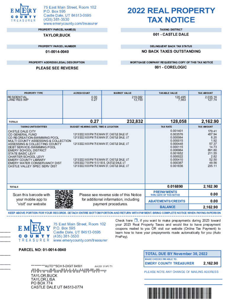 www.emerycounty.com/treasurerTREASURER2022 REAL PROPERTY