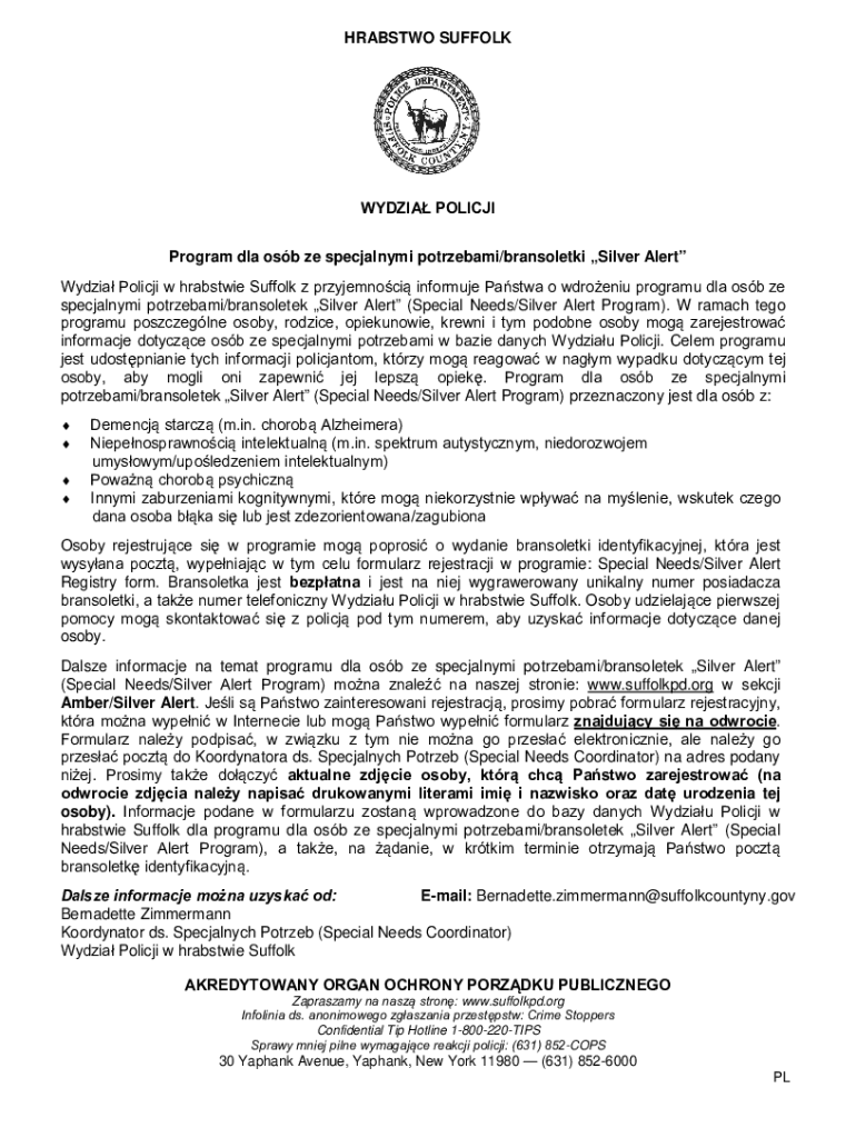 Program DLA OSB he specjalnymi potrzebami/bransoletki Silver Alert