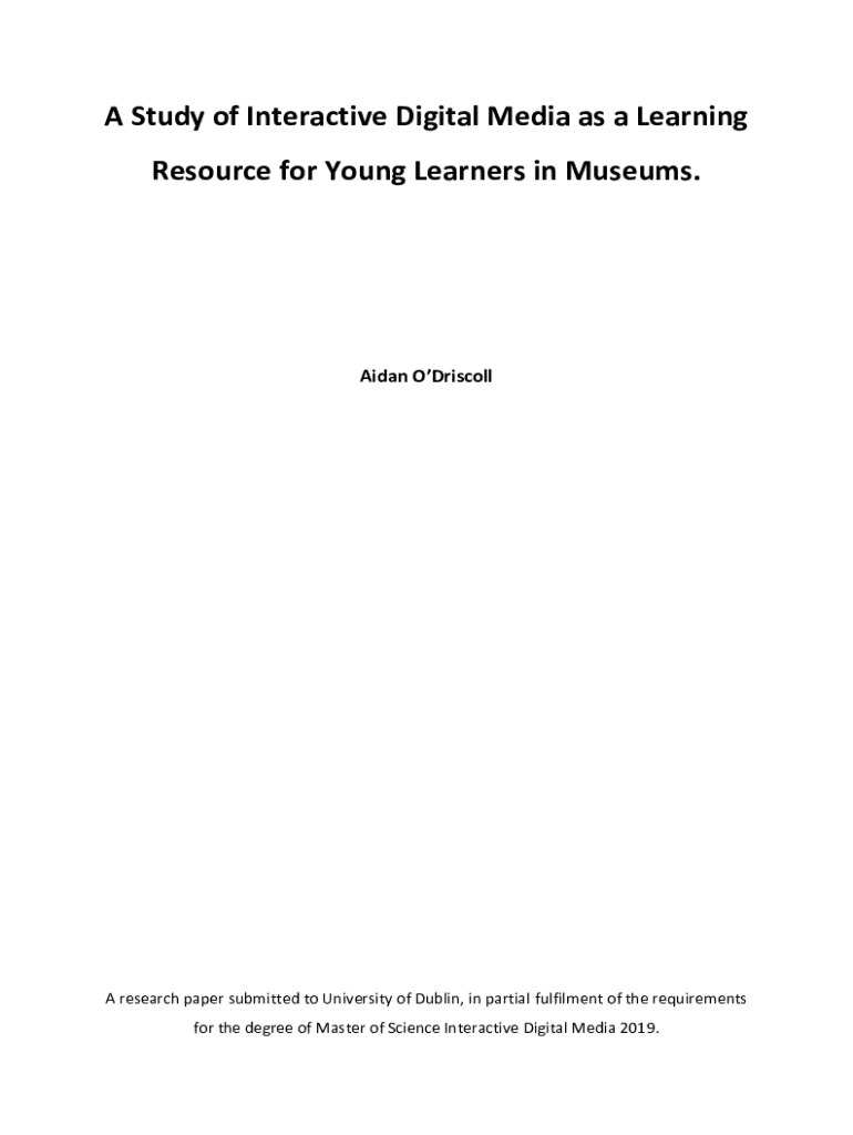 A Study of Interactive Digital Media as a Learning Resource for Young Learners in Museums. Aidan Driscoll research paper submitted to University of Dublin, in partial fulfillment of the requirements