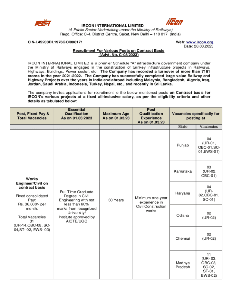 IRON INTERNATIONAL LIMITED (A Public Sector Undertaking under the Ministry of Railways) Red. Office: C4, District Center, Sake, New Delhi 110 017 (India) CINL45203DL1976GOI008171Web: www.ircon.org