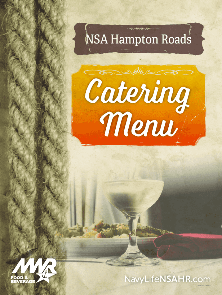 NSA Hampton RoadsCatering MenuNavyLifeNSAHR.com UPDATED JUNE 2023FAMILY FUN FITNESS EVENTSNavyLifeNSAHR.com SAMAR navymwrnsahamptonroadsSTAY CONNECTED with Navy Life in Hampton Roads! No Navy endorsement