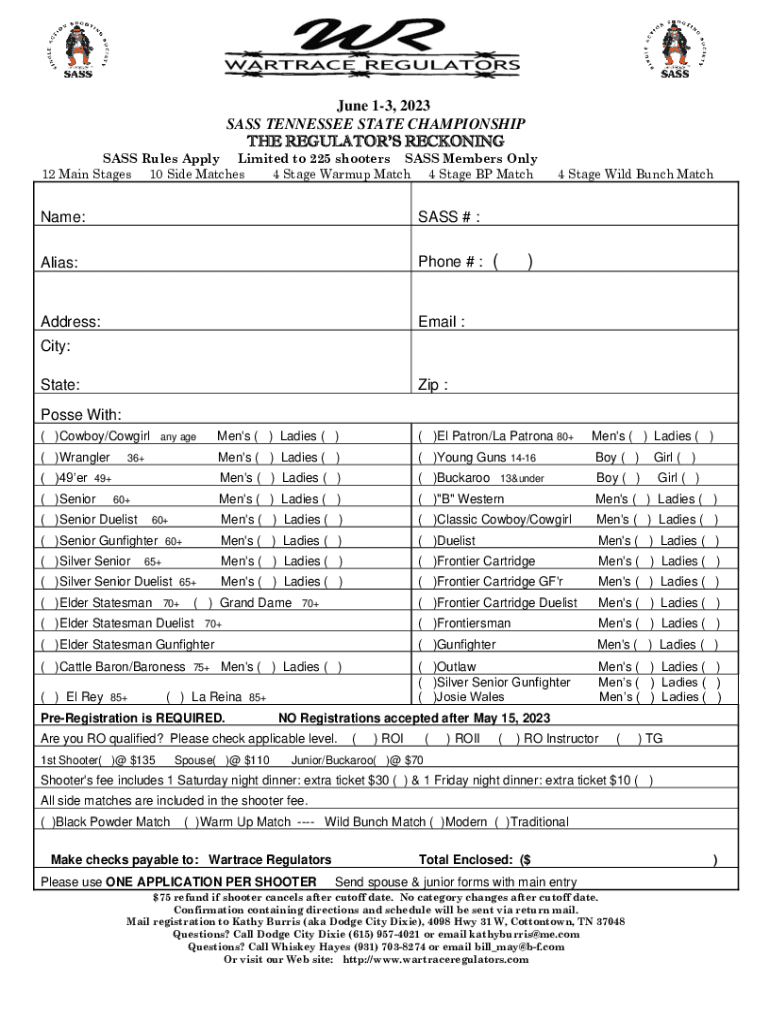 Get the free Wartrace Regulators - SASS Tennessee State Match