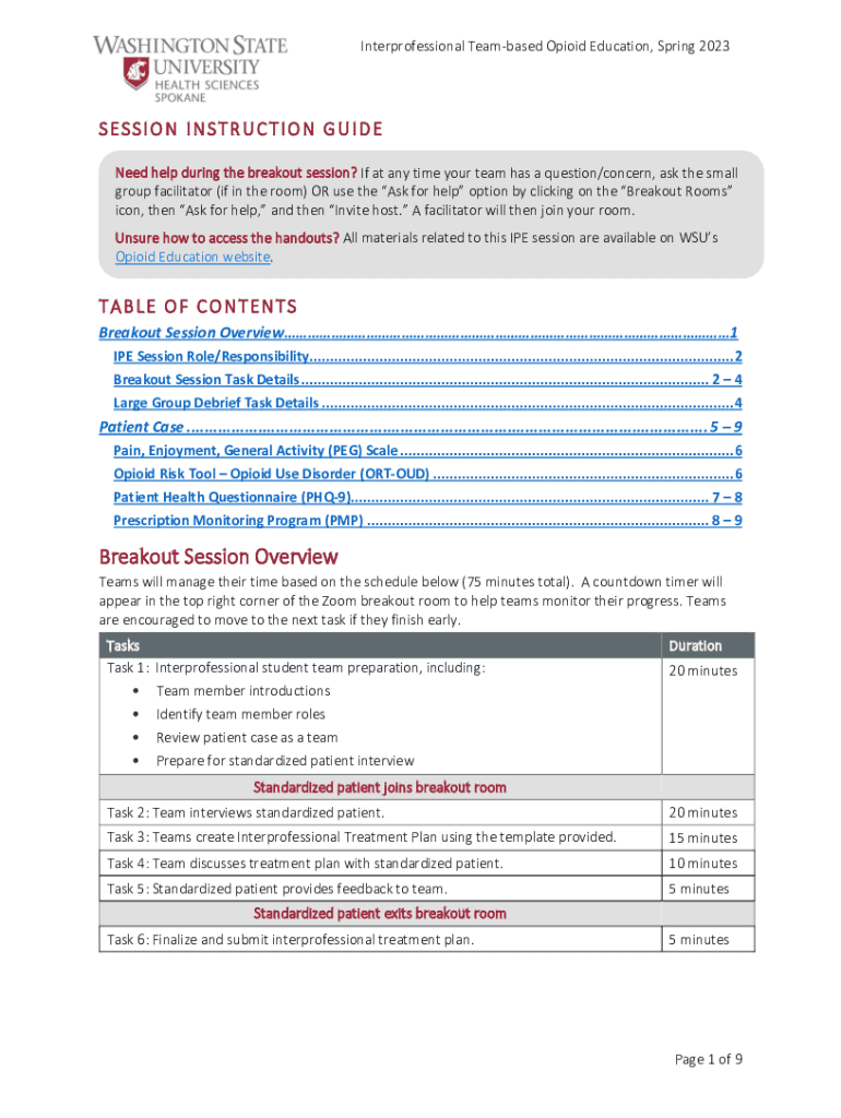 Interprofessional Team based Opioid Education, Spring 2023SESSION INSTRUCTION GUIDE Need help during the breakout session? If at any time your team has a question/concern, ask the small group facilitator