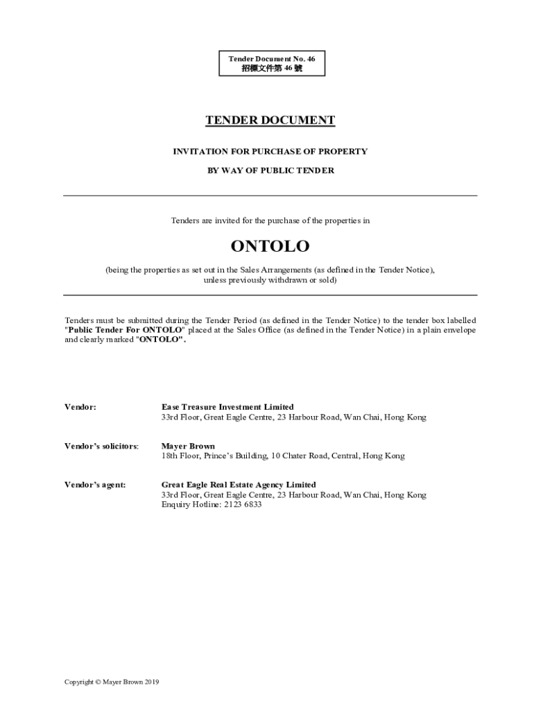 Tender Document No. 46 46 TENDER DOCUMENT INVITATION FOR PURCHASE OF PROPERTY BY WAY OF PUBLIC TENDERTenders are invited for the purchase of the properties' inositol (being the properties as set out
