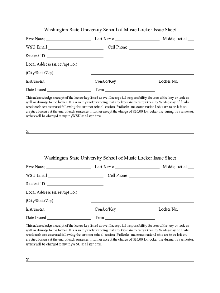 Get the free Washington State University School of Music Locker Issue Sheet