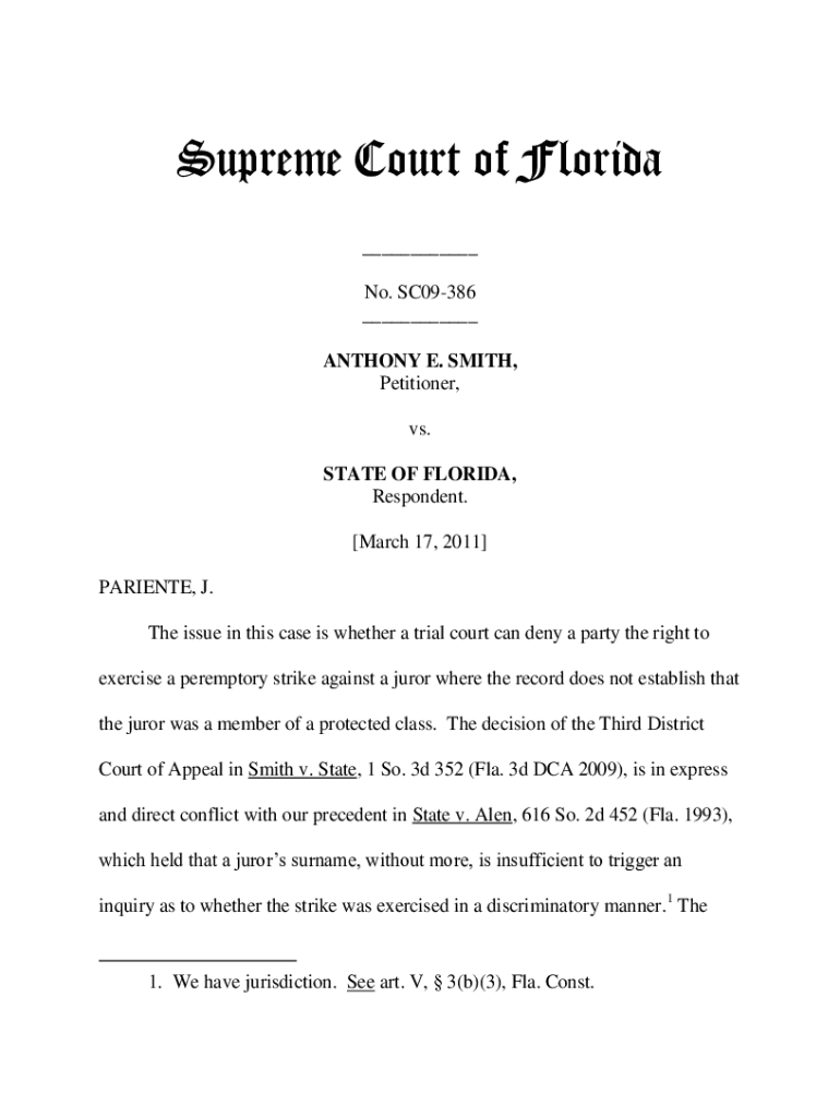 Get the free Anthony J. Smith v. State of Florida - Supreme Court