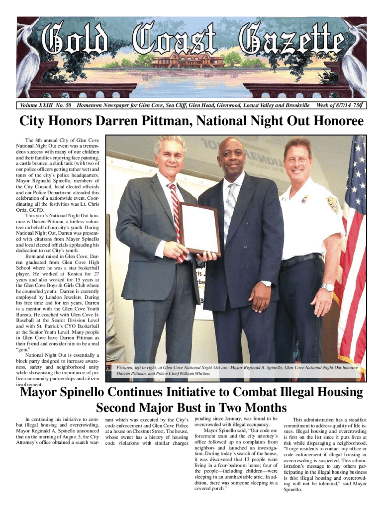 Volume XXIII No. 50Hometown Newspaper for Glen Cove, Sea Cliff, Glen Head, Glenwood, Locust Valley and BrookvilleWeek of 8/7/14 75CCity Honors Darren Pittman, National Night Out Honoree The 8th annual