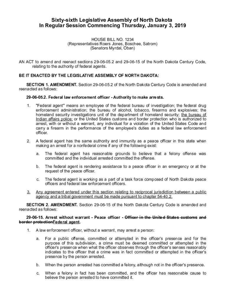 Sixty-sixth Legislative Assemblies of North Dakota In Regular Session Commencing Thursday, January 3, 2019, HOUSE BILL NO. 1234 (Representatives Rogers Jones, Bouchée, Storm) (Senators Myrdal, Ban)