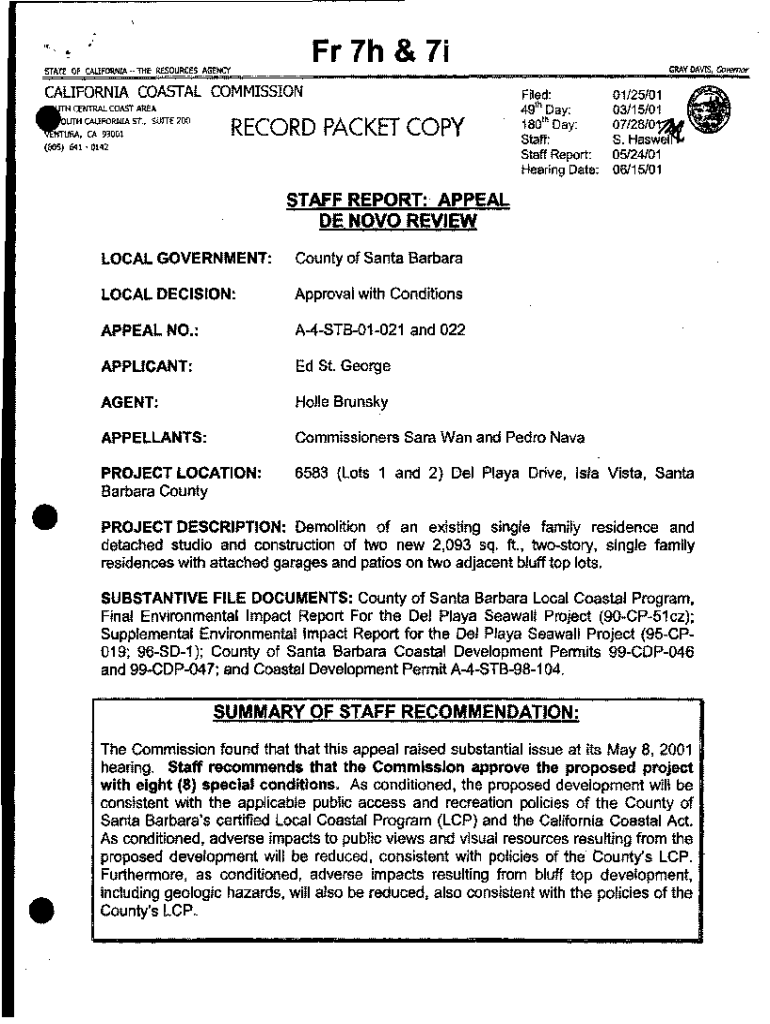 For 7h & 7iSTATE OF CALIFORNIA THE RESOURCES AGENCYCALIFORNIA COASTAL Commissioned:H CENTRAL COAST ARE AUTH CARBON! A Sf., SUITE 200