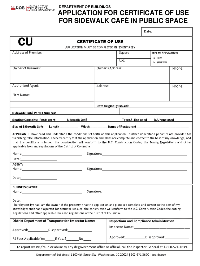 Get, Create, Make and Sign dob-application-for-certificate-of-use-for-sidewalk-cafe-in