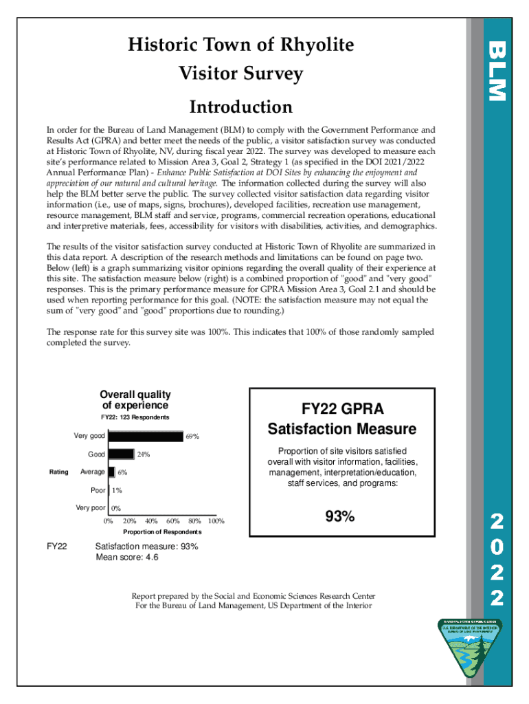 Historic Town of Cryolite Visitor Survey Introduction In order for the Bureau of Land Management (BLM) to comply with the Government Performance and Results Act (GPRA) and better meet the needs of