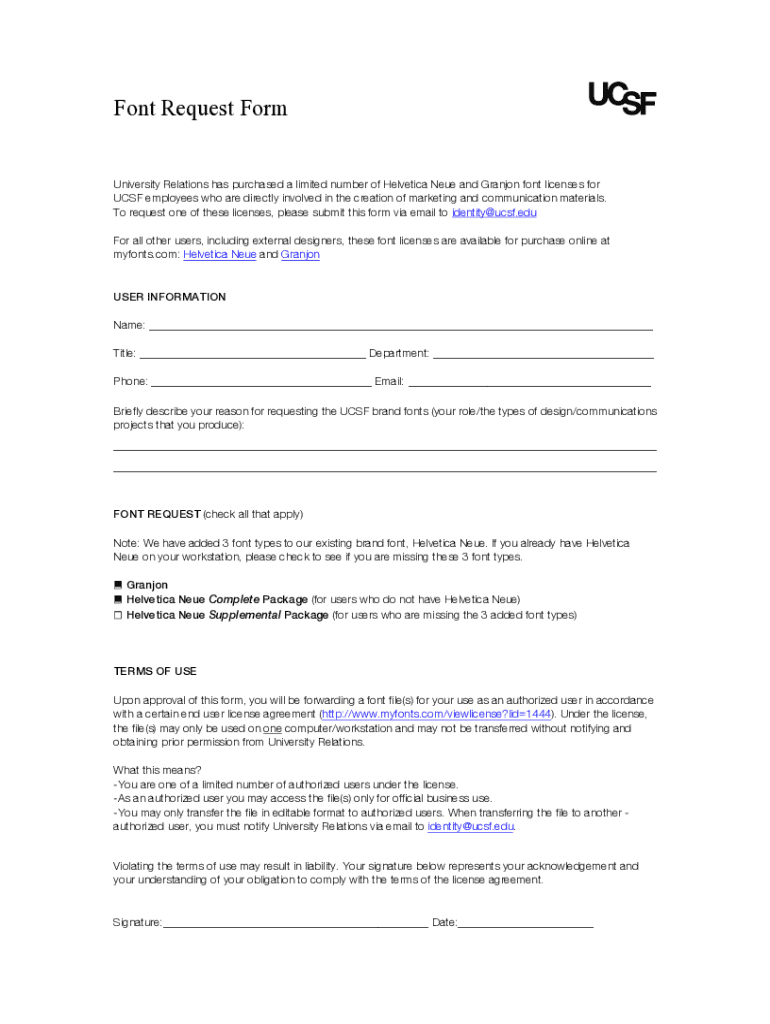 Get the free Font Request Form - identity ucsf