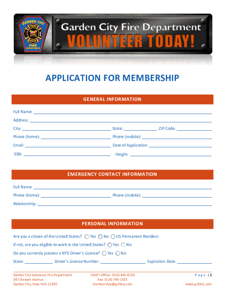 APPLICATION FOR MEMBERSHIP GENERAL INFORMATION Full Name: Address: City:State:Phone (home):Phone (mobile):Email:Date of Application:SSN:ZIP Code:Height:EMERGENCY CONTACT INFORMATION Full Name: Phone